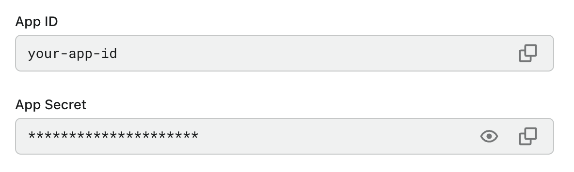 This is achieved by including the app's credentials in the Basic authentication form in the request Authorization header, where username is the App ID, and password is the App Secret.